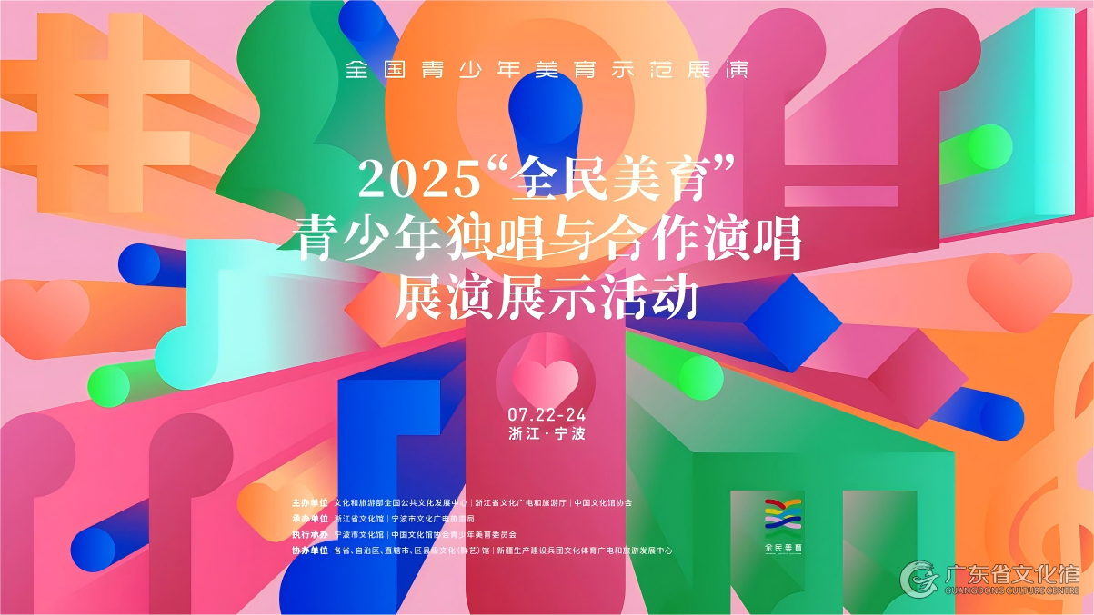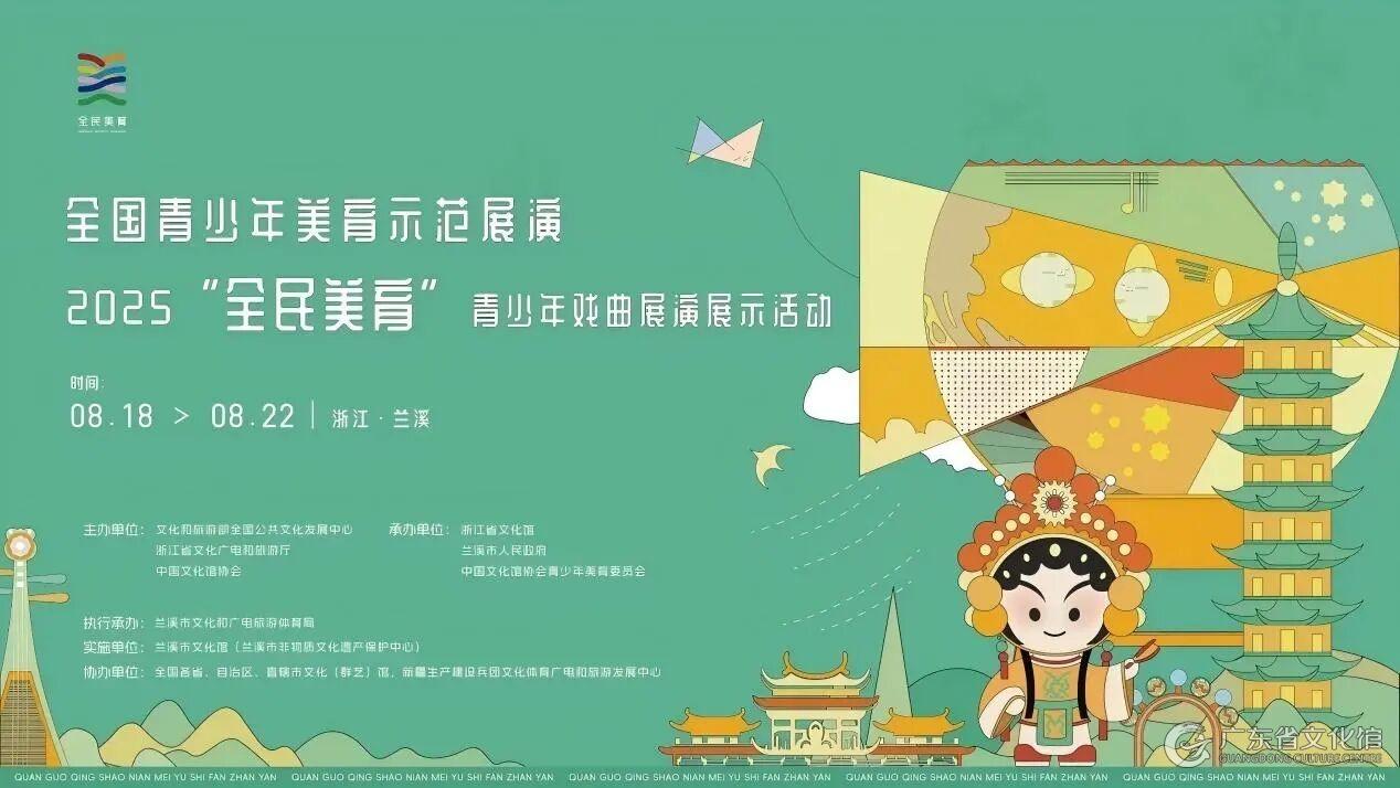 挥洒青春诗意,共赴美育之约。由文化和旅游部全国公共文化发展中心、中国文化馆协会等单位主办的全国青少年美育示范展演——2025“全民美育”青少年系列展演展示活动,于2025年7月至8月,先后在浙江宁波、北京、内蒙古呼和浩特、海南三亚、浙江兰溪成功举办了青少年独唱与合作演唱、合唱、舞蹈、美术、戏曲展演展示活动,是展现新时代青少年群体精神风貌和艺术风采的一次全国性青少年艺术盛会。