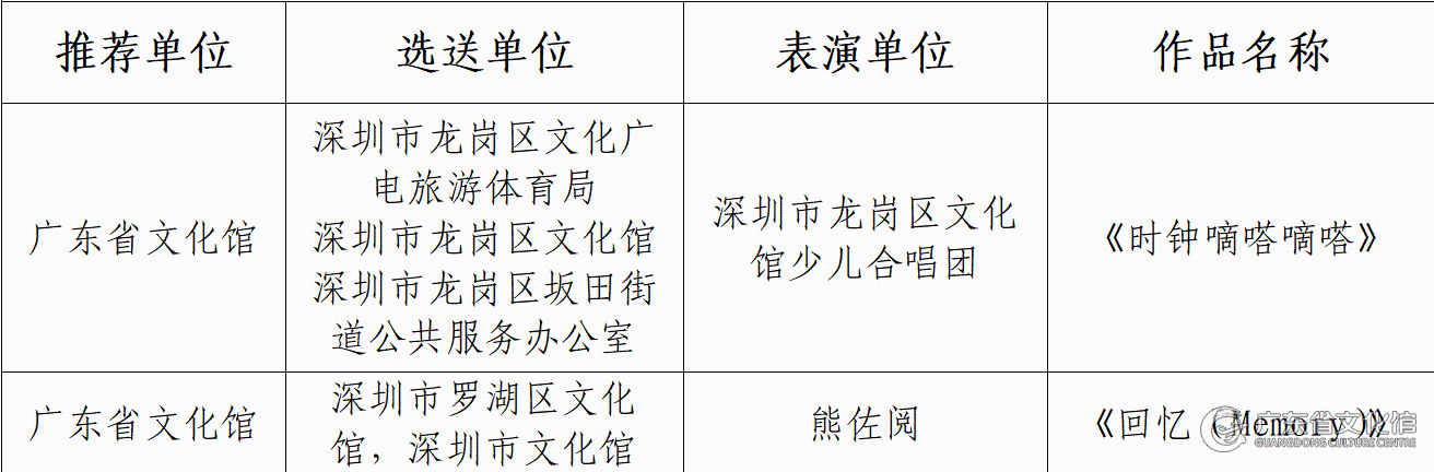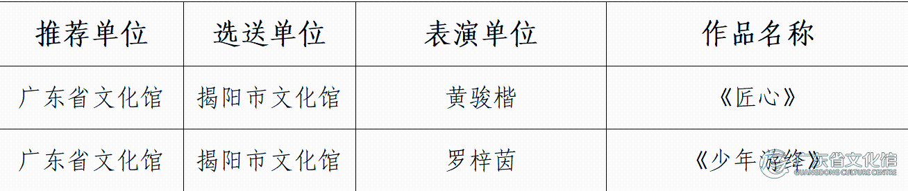 广东省入选线下展演作品列表