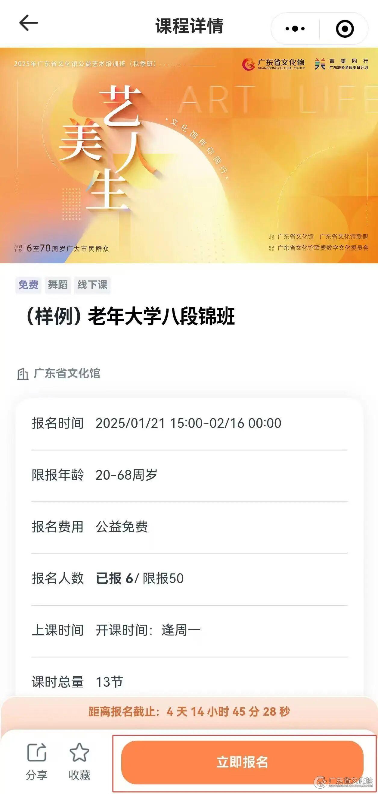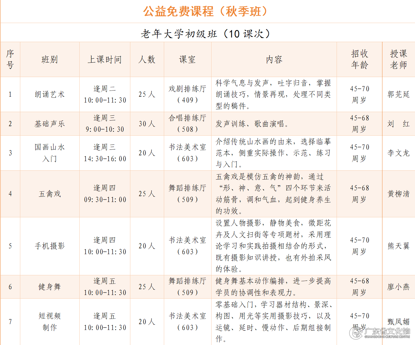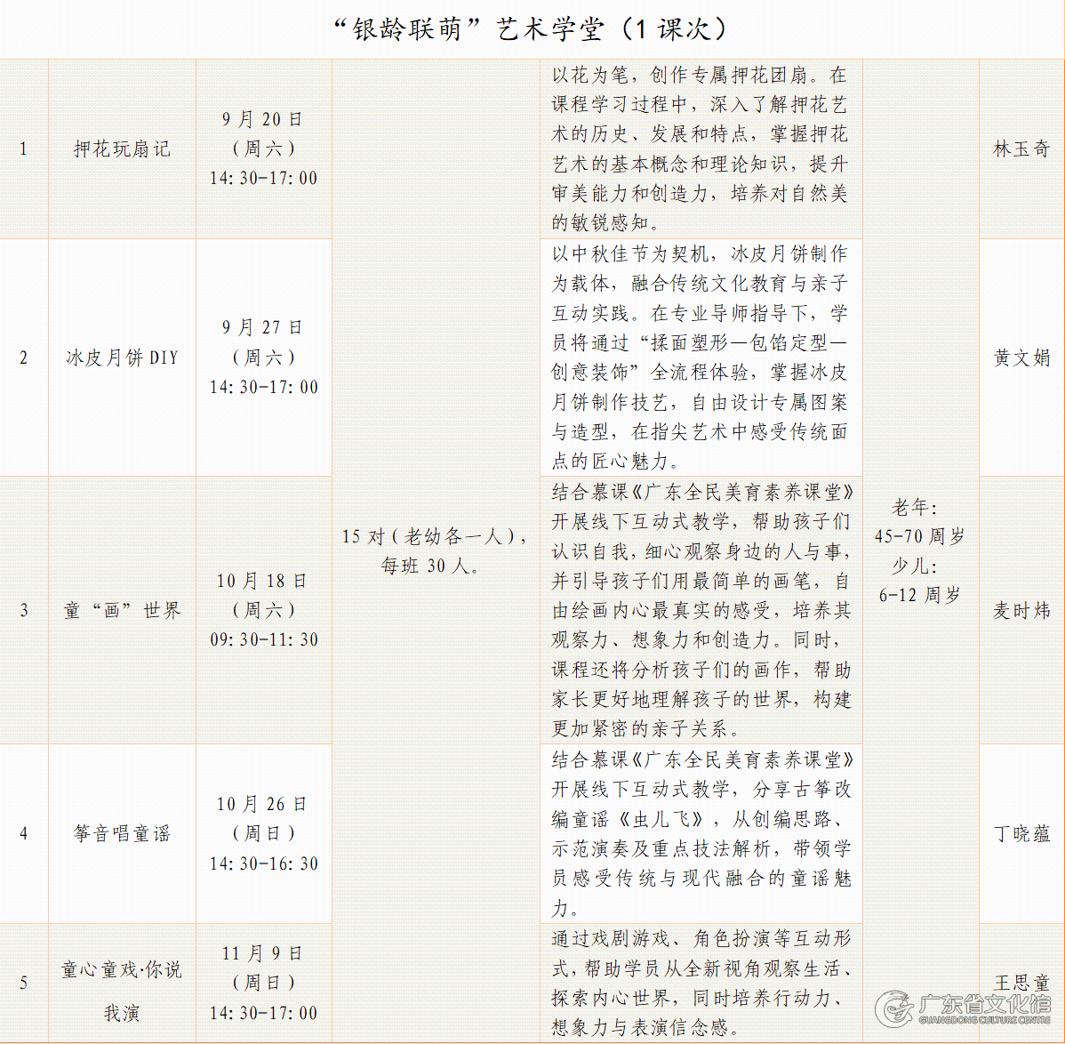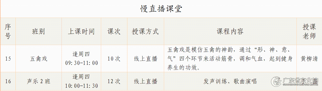 3.“慢直播课堂”及“银龄联盟”艺术学堂:各课报名时间及安排请留意广东省文化馆微信公众号后续推文。