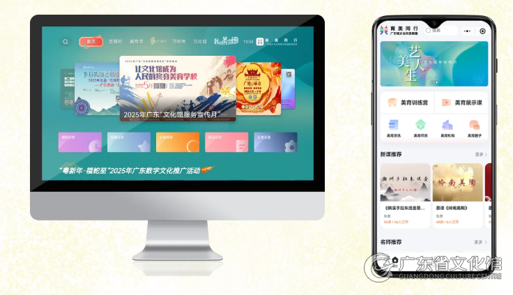 为积极构建优质文化资源直达基层的长效机制,着力推动我省全民美育工作深入开展,充分发挥文化馆“全民艺术普及”阵地作用,打造城乡居民的终身美育学校,广东省文化馆、广东省文化馆联盟策划实施“育美同行”广东城乡全民美育计划,倾力打造面向文化馆(站)、社会服务点的“育美同行”广东城乡全民美育云享智能服务端,以及面向群众开展美育服务的“育美同行”广东城乡全民美育圈小程序。涵盖直播间、美育课、广东群艺荟、美育拼图、寻岭南、文化墟等多个板块,通过线上线下融合的方式,推动全民艺术普及与城乡美育的深度融合,为群众献上一场跨越时空的艺术盛宴。