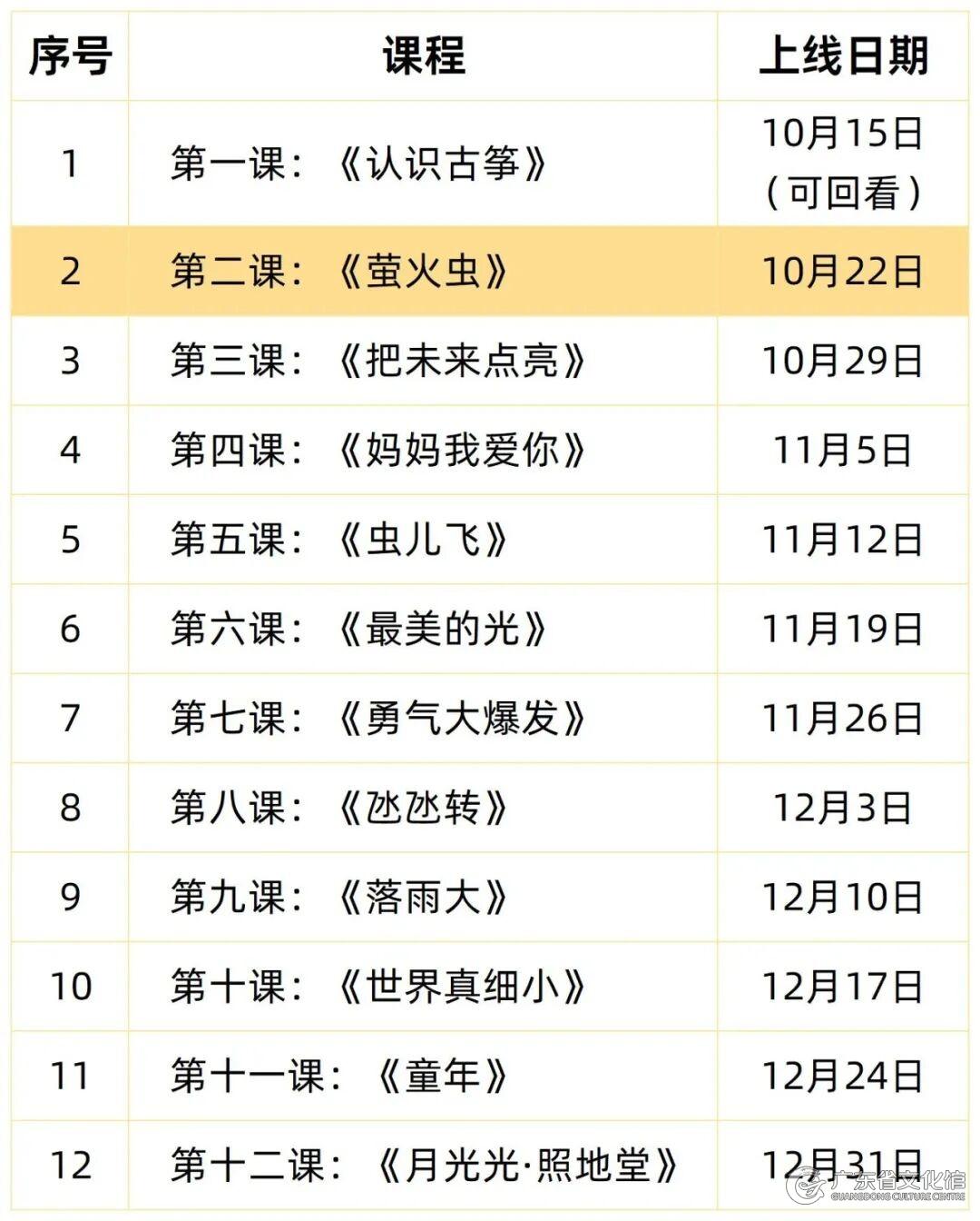 广东全民美育素养课堂(第一期) ——《筝音唱童谣》 “筝鸣传粤韵,筝音唱童谣。”本套《筝音唱童谣》将聚焦青少年美育,精选《虫儿飞》《月光光·照地堂》《童年》等大家耳熟能详的童谣、儿童歌曲进行二次创作,用古筝演绎属于青少年的音乐,同时从作品的创编思路、示范演奏及重点技法解析等多方面进行分享教学。乐曲成品韶关市始兴县、云浮市郁南县等地演奏,在山水筝韵中与大家一同感受岭南文化的独特魅力,探索传统艺术之美的创新演绎,涵养更深厚的文化自信。 讲师简介 丁晓蕴 副研究馆员,广东省文化馆古筝专业教师,中国社会艺术协会理事,中国民族管弦乐学会、中国社会艺术协会儿童艺术教育委员会会员。历任由中国关心下一代委员会、中国少先队全国工作委员会等主办的全国艺术人才展示及社会艺术水平考级评委。具有近20年古筝教学经验,创作、创编的音乐作品30余件,屡获国家级、省市级奖项。 课程上新安排 第二课:《萤火虫》 夜幕降临,夏风轻拂,远处的田野间,小精灵们闪烁飞舞,像跳动的音符,把夜色点缀得如梦如幻。“夏日里的夜空,飞着许多小精灵,慢慢飞静静听,远处传来的蛙鸣……”这首富有童趣的《萤火虫》以清新的旋律与歌词,成为孩子们口中传唱的动人童谣。 在本节课程中,丁丁老师将这首现代童谣改编成古筝曲,带大家用古筝追逐“萤火虫”,用筝音奏出小精灵们飞舞的轨迹!还会带领大家学习三个古筝技巧:节拍的变化、泛音弹奏和定滑音。 快来跟着丁丁老师,拨动琴弦,让《萤火虫》的旋律在指尖轻轻飘扬,点亮夜色中那一抹温柔的光! 课程报名及观看方式 第二步:请报名参加《广东全民美育素养课堂(第一期)》系列慕课的学员,务必在平台报名后点击识别下方二维码添加助教微信,申请加入【素养课堂】学习交流群,实时关注课程更新动态。 第三步:在线学习。已成功报名的学员,可无限次观看课程。后续每逢周三更新一课,无须重复报名。 美育如春风,润物细无声。快来加入美育之旅,让我们一起探索美、创造美,让想象驰骋于画布,让旋律流淌于指尖,在美育熏陶中,收获成长的喜悦。